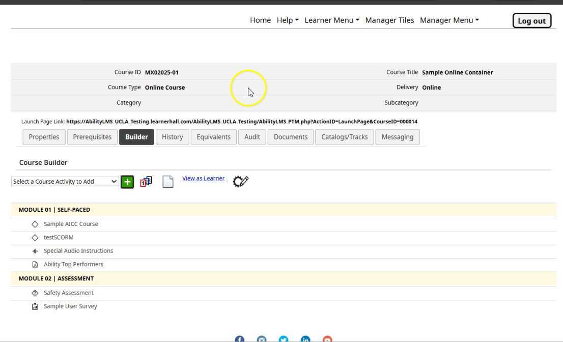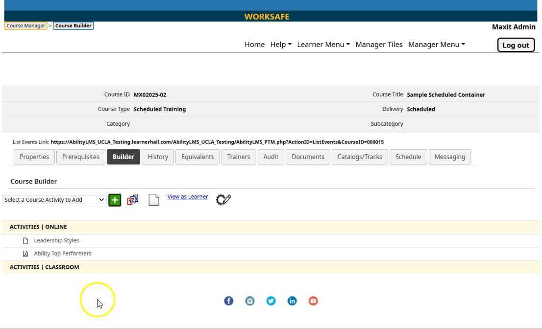In this video, two live, in-person classroom training activities are added to the single course container.