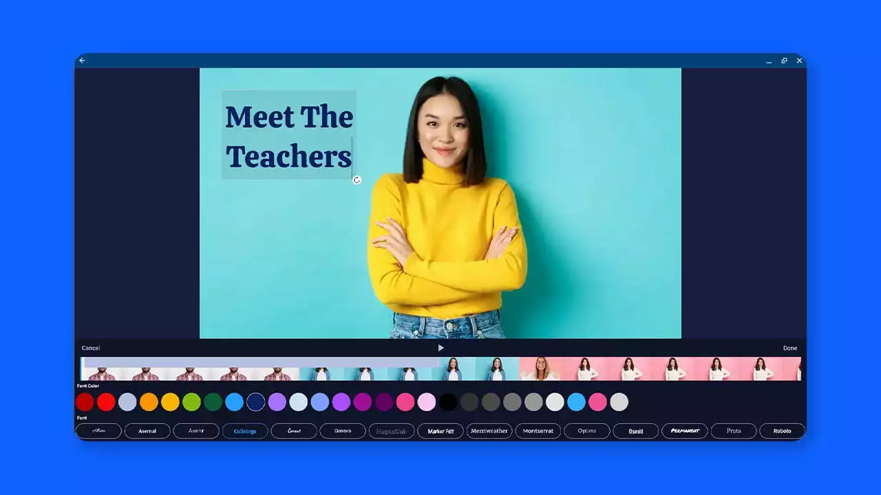 Easily enhance your Chromebook videos with text. Adjust color, font, and size in the easy Chromebook Video Editor.