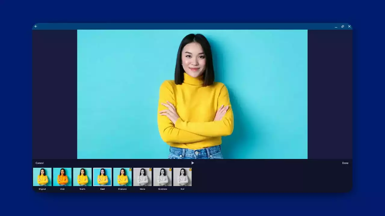 The Filters tool modifies the color balance to set the mood of your video.